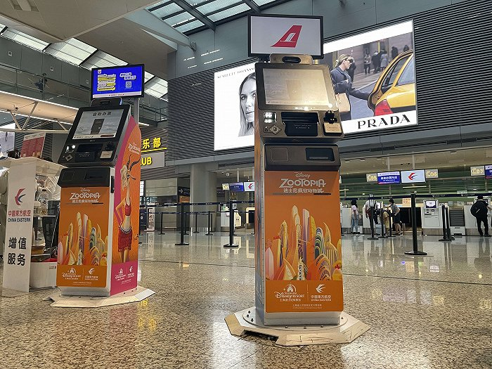 上海虹桥机场的自助值机设备上贴上了“疯狂动物城”的相关图案。拍摄:白帆