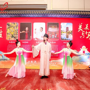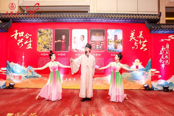 一场百花齐放的文化交流会:围桌畅谈,各抒己见,一场和美文化交流会精彩上演。中共杭州市宣传部(市文明办)朱一斌处长,中国书法家协会会员、安徽省民族书画院院长、安徽省书画艺术研究院院长杨苏安,安徽大学教授、电视台及多家媒体评论员、武汉大学博士王云飞,国家一级演员、安徽省黄梅戏剧院凌夏,资深媒体人、安徽省网络作协会副秘书长、青年作家陶妍妍,杭州市西湖情玫瑰婚典组委会主任、总导演王松法等嘉宾以和美文化为主题,以爱情文化、酒文化为桥梁,畅谈文化见解、行业趣闻,嘉宾们探讨爱情之都杭州的城市文化和人文风情;称颂宜宾诗酒文化的源远流长和深厚底蕴;赞叹安徽令人心驰神往的青山绿水与浓墨风骨;沉浸式体验书画艺术、戏曲艺术所蕴含的和谐之美与文脉传承;分享各自对和美生活的理解,携手打造了一场弘扬和美文化、倡导和美婚恋价值观、传递幸福家庭正能量的文化之旅,最后,嘉宾们共同举杯,共祝和美!