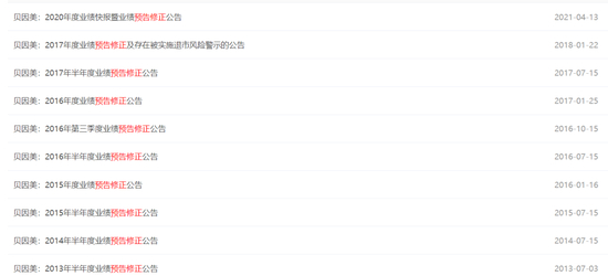 从2013年至今,贝因美(002570.SZ)出现至少10次以上业绩预告修正公告,被调侃为“A股变脸王”。