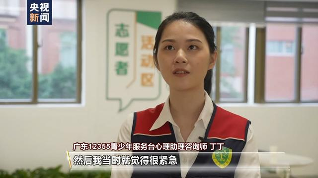 广东12355青少年服务台心理助理咨询师 丁丁:有一个我觉得是我做得最有成就感的一个案例。他的第一句话就是,我吃了头孢又喝了酒,我会不会死?然后我当时就当时觉得很紧急,我就是一边报警一边说,互相聊一下经历,不停地共情他的一些经历。那么最后他就跟我说谢谢你,我现在进行催吐了,谢谢你一直陪着我。我就觉得很开心。