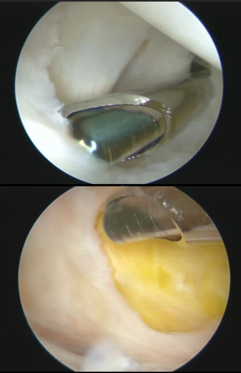 近年来随着微创技术的发展,关节镜越来越多地运用在儿童膝关节手术中。“关节镜下内引流术”可通过关节囊裂口切除瓣膜,变单向瓣膜为双向流通,治疗关节内原发病变,减少滑液产生来源。复发率较低,安全微创,疗效好,该方案成为小鱼手术的首选方案。为进一步减少创伤,手术团队决定将“三孔”操作减少为“两孔”。