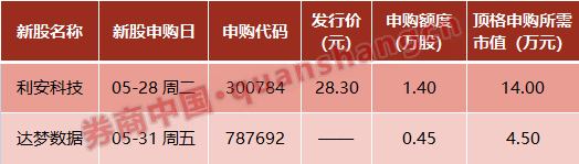 有2只新股发行:利安科技、达梦数据。