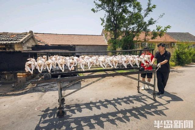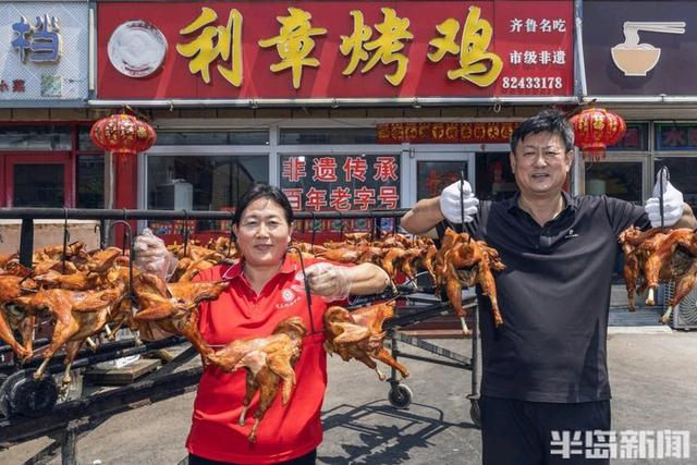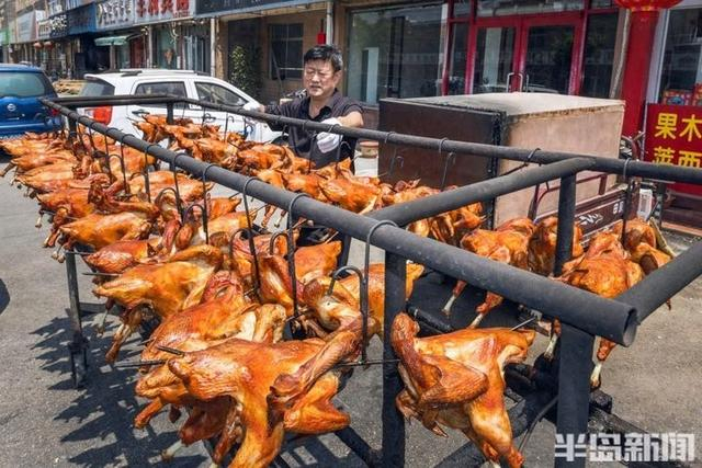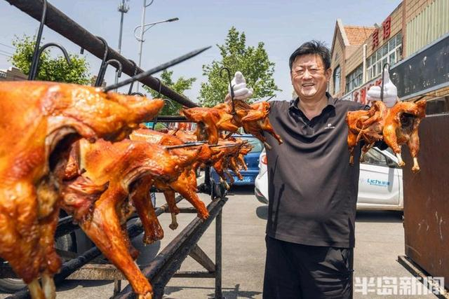 5月23日,莱西市院上镇,院上烤鸡“非遗”传承人周立章正忙着制作烤鸡。“院上烤鸡历史悠久,我从1993年开始制作烤鸡,如今已经31年了。”周立章介绍,烤鸡手艺是当地几代人传下来的宝贵财富,经过传承发展,在2014年入选了莱西市“非遗”。