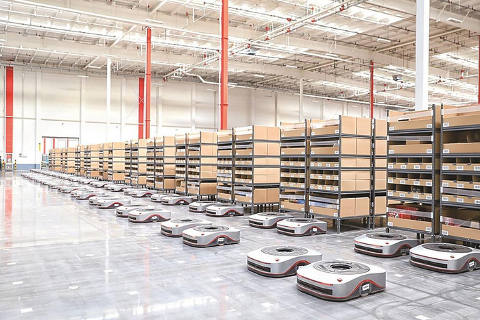 京东物流“亚洲一号”智能产业园通过在商品的立体化存储、拣选、包装、输送、分拣等环节大规模应用自动化设备、机器人、智能管理系统,来降低成本和提升效率。 郑 轩 摄