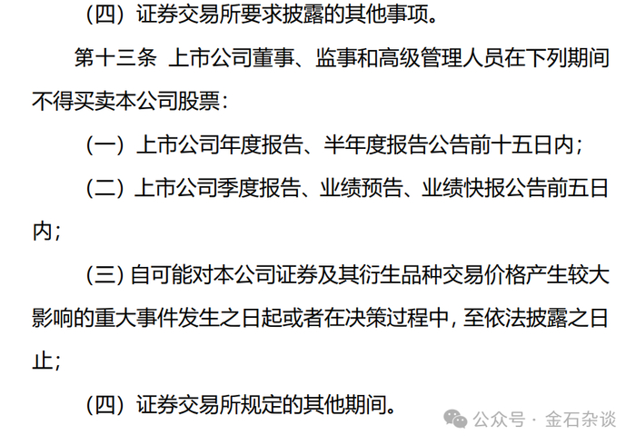 3)董监高减持股份还是需要提前15天预披露,在业绩报静默期董监高不得买卖股票。
