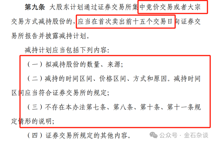 下面,金石杂谈带大家一起看看31条减持新规其他重要规定: