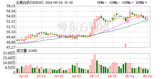 截至5月24日,云南白药股价报53.92元,市值达962亿元。