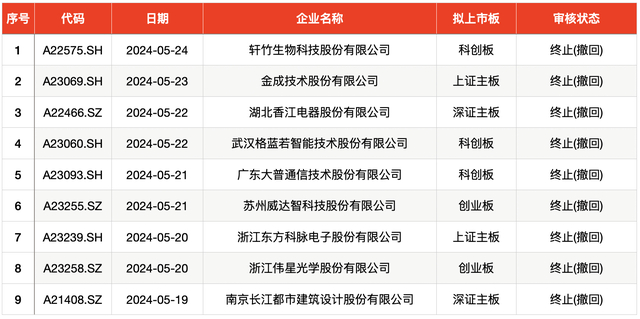 此外,上周,共有5家企业终止IPO,均为主动撤回IPO材料。
