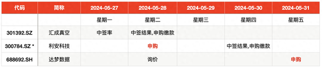 本周A股共安排2只新股申购。周二申购的新股,为宁波利安科技股份有限公司(简称“利安科技”,300784.SZ),而达梦数据则在周五开启申购。