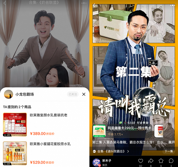 稍早之前的5月1日,淘宝「剧场」上线的短剧就有《奶爸联盟》,剧中「TA提到的商品」反复种草的「欧莱雅复颜水乳套装」、「欧莱雅小蜜罐」,皆是精致女孩们618抢购的热门单品。