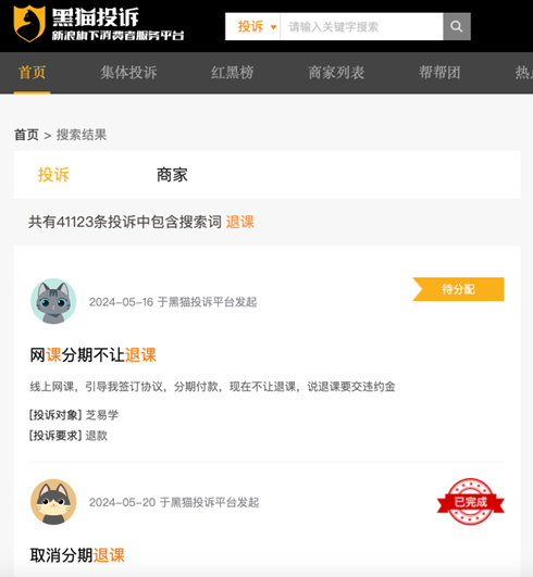 值得注意的是,CCtalk股权纠纷不断,牵扯出曾经互联网教育行业最早筹备港交所上市的沪江股权纷争,CCtalk曾是沪江旗下两大业务之一。退课退款难也并非CCtalk独有的问题,目前已成为当前互联网教育行业被诟病的共同顽疾。在黑猫投诉平台上,关于付费网课的投诉量高达4万余条,大多数涉及退费难问题,涉及慕课网、考塔网、高途课堂、有道考资等众多互联网教育机构。