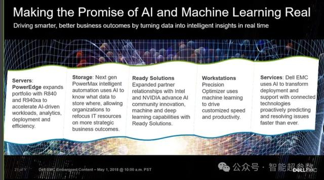 2018年的戴尔科技全球大会上,戴尔科技就提出正在将其服务器、存储系统、超融合基础设施和未来架构定位于处理人工智能、机器学习和预测分析等工作负载。