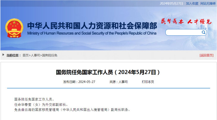 免去曲云海的国家移民管理局(中华人民共和国出入境管理局)副局长职务。