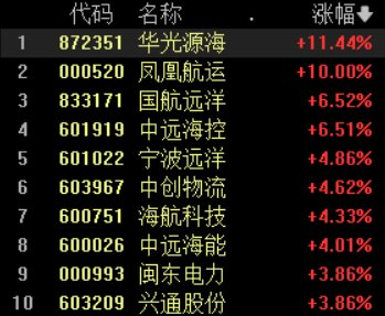 航运概念股大涨,凤凰航运涨停,中远海控涨超6%