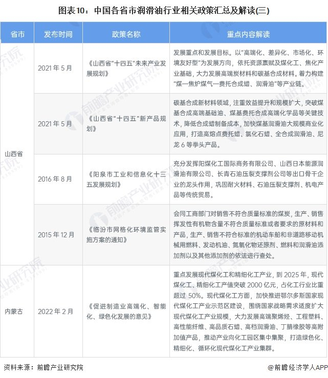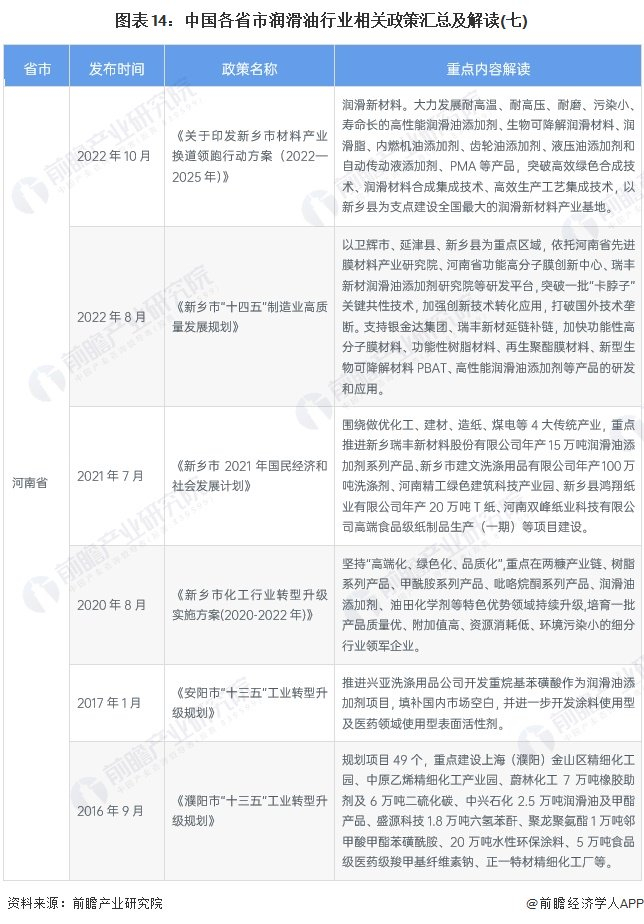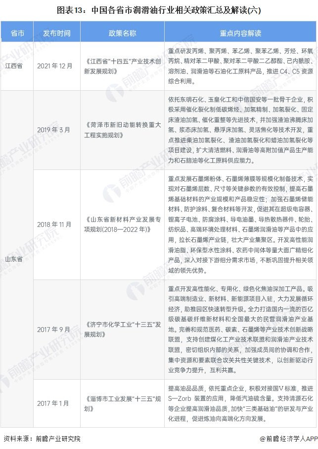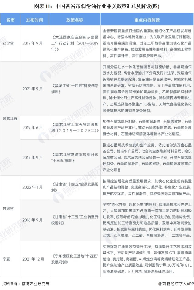 各个省市有关润滑油行业发展大多围绕着重点高端润滑油,补齐润滑油产业链,打造润滑油工业园区集中化的方向发展,同时也是在顺应碳中和、绿色清洁能源的发展。