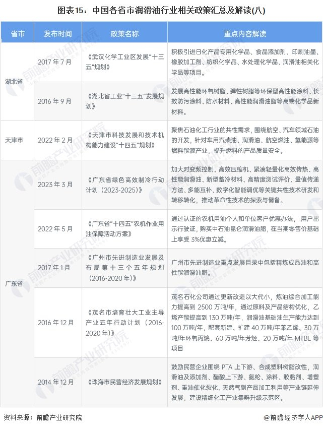 ——31省市润滑油行业发展目标解读