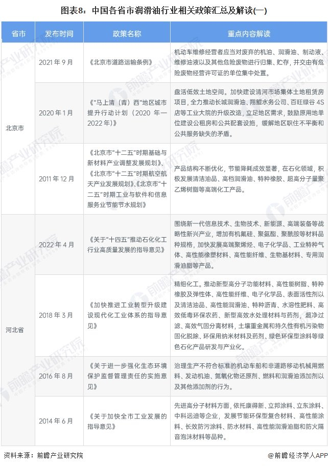 本文核心内容:中国润滑油行业政策;各省市润滑油行业政策;政策解读