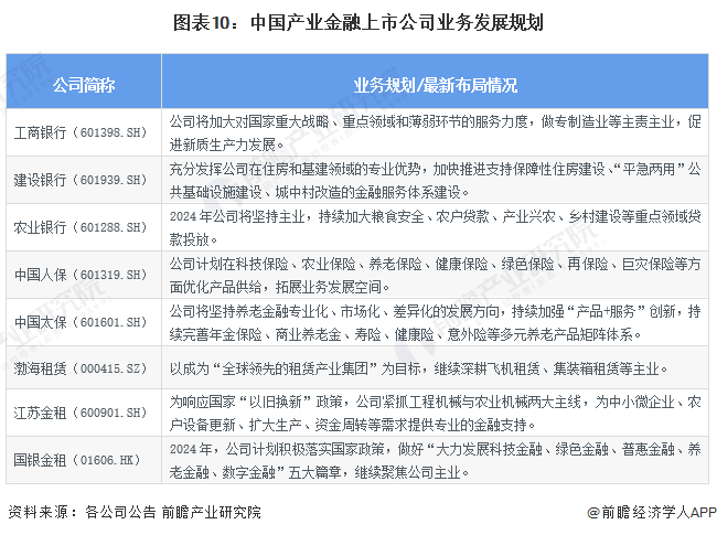 产业金融上市公司业务规划对比