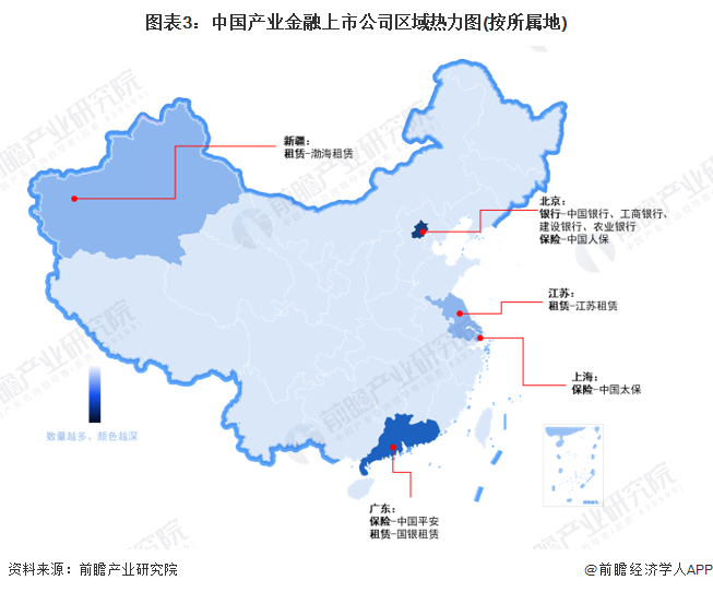从区域分布来看,银行平台的代表性上市企业较为集中,聚集在北京地区;保险平台的代表性上市企业分布在北京、上海、广东地区;租赁平台的代表性上市企业分布在新疆、广东、江苏地区。