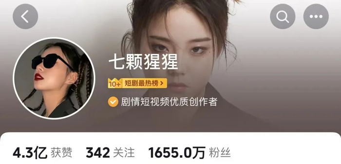 此前,“王妈”账号七颗猩猩因“重生之我在霸总短剧里当保姆”等系列短剧爆火网络,目前账号粉丝已达1655万。