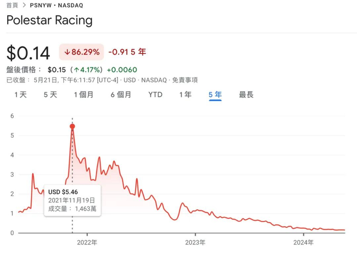 5 月 17 日,极星(Polestar)发布公告称,因没有及时提交年报,收到了纳斯达克的违规通知。