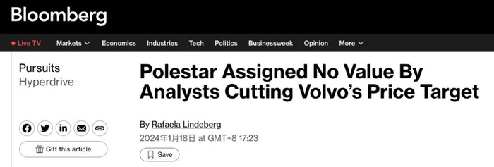 年初,极星更是被瑞典银行业老大、沃尔沃上市时的主要顾问、北欧最大的金融集团之一——北欧斯安银行(Skandinaviska Enskilda Banken,SEB)看空,对极星的品牌估值从 120 亿降低到 0 克朗,其股票分析师认为「极星已经成为了拖累。」