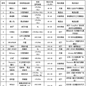3.本次比较试验显示, 20款防晒衣、皮肤衣样品的质量与价格没有必然联系,样品质量并没有随样品的价格有趋势性的变化。