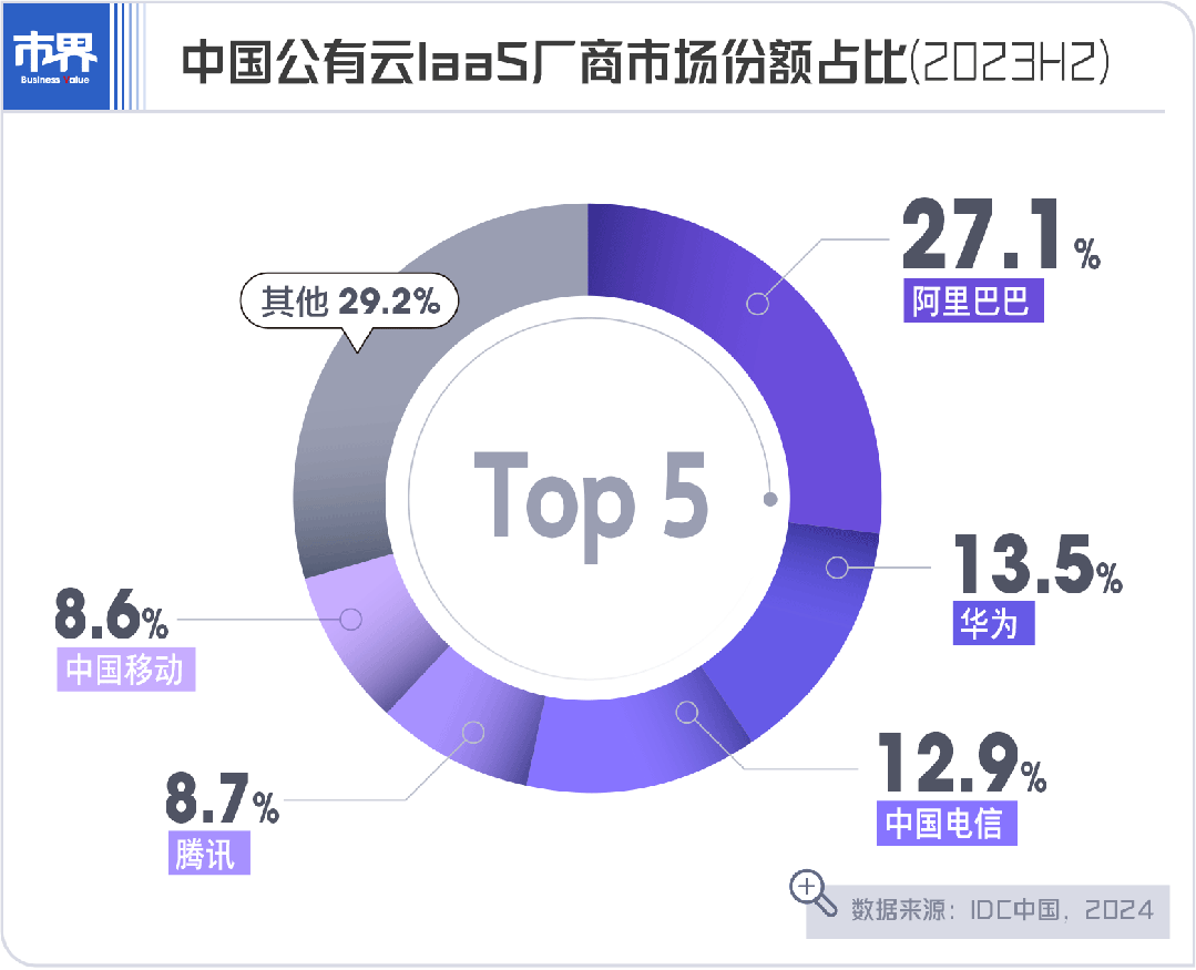 毕竟对于内忧外患的阿里来说,大模型已被视为不容有失的、决定未来十年的船票。过去两年,阿里云虽然在市场份额、营收上仍位列行业第一,但在争夺政企云等节节受挫后,增速比起逐年仍以两位数抬升的华为云、天翼云等,已只余个位数。