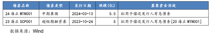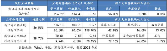 海正集团自2023年10月以来发行过两期协会产品,募集资金仍可用于偿还其他有息债务。海正集团作为椒江国资旗下子公司,主要负责药品、生物材料生产销售等,且由专业上市公司负责,研发实力强,高新科技产业属性浓厚。