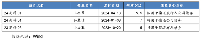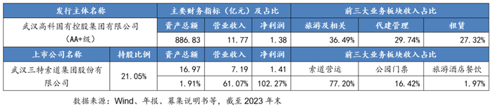 高科控股自2023年以来发行3期公司债券,部分募集资金用于偿还公司其他有息债务。高科控股除涉及传统类城投业务以外,还主要负责产业园区运营、高新技术产业投资和旅游等,旗下三特索道作为旅游板块运营主体自2023年并表以来,为高科控股贡献较多的营业收入和净利润,带动经营业绩上升,对传统土地开发、代建等城投类业务板块的依赖逐渐变小。