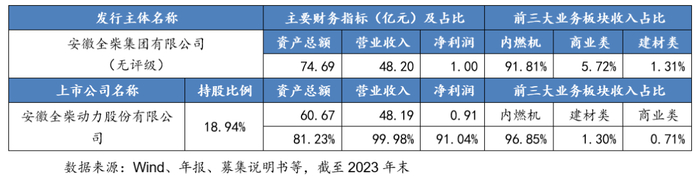 全柴集团目前无信用评级,2023年10月以来仅发行一期可交债,标的股票为全柴动力。全柴集团除发动机研发、生产和销售板块以外,其他业务板块占比较小,制造业属性很强。