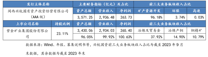 兴杭国资自2023年10月以来多次发行协会中期票据,且以偿还其他有息债务为主。兴杭国资资产构成主要以上市公司板块为主,矿产资源开发业务对公司的营业收入的贡献最为显著,基本占到100%,资源能源产业属性强。