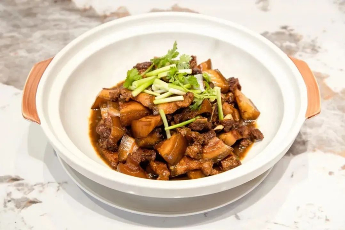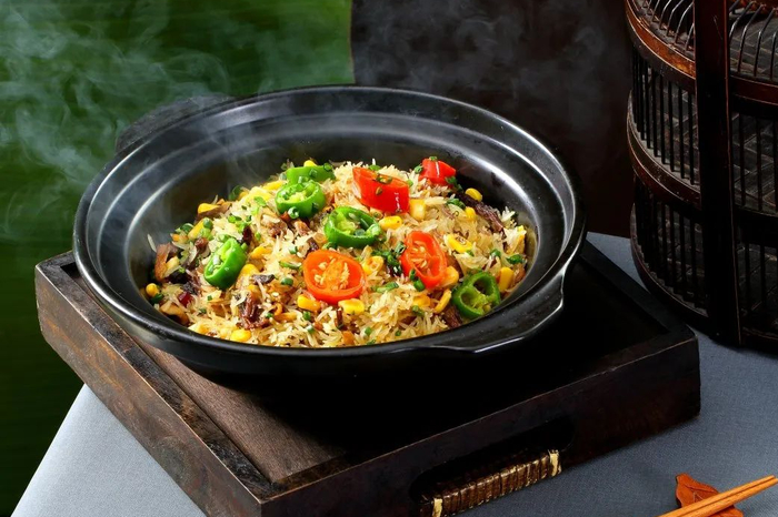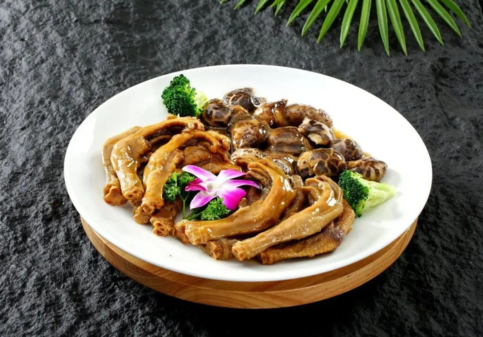 砂煲鹿茸菇炒饭、鲍汁花菇扣鹅掌