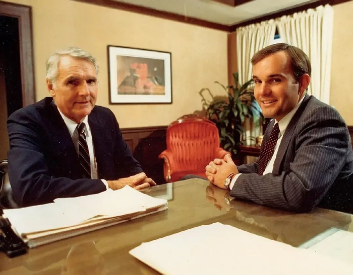杰克(左)和儿子安迪一起工作了几十年。“杰克是真正的创业者……我们总是开玩笑说,杰克先出生很重要,因为我爸爸很喜欢冒险,不过他所冒的风险都是经过深思熟虑的。”克里斯说。