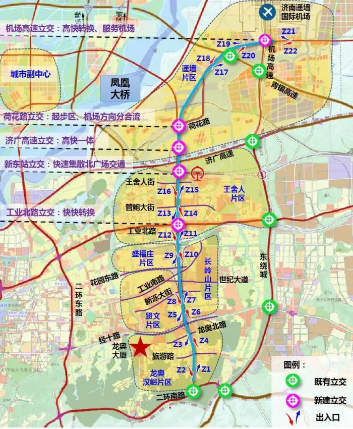 该工程向南衔接奥体片区、CBD片区、高新区核心区,向北衔接东站片区、华山片区,并规划继续向北跨过黄河。它建成通车后,将成为济南一条南北大通道!
