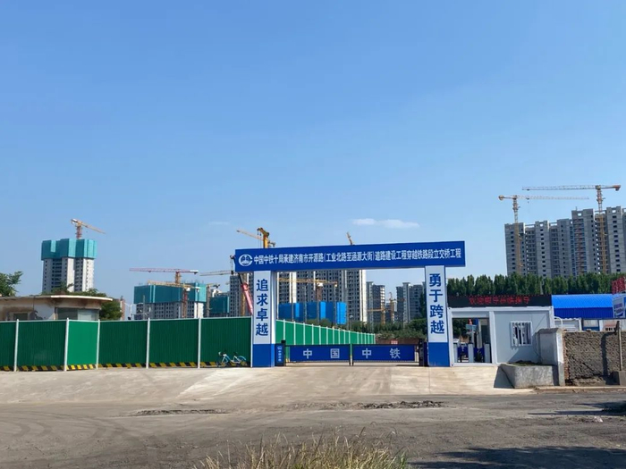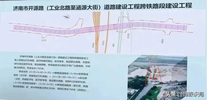 在胶济铁路以北,它的项目部也已经成立,周围也已经被围挡,项目名字为“开源路(工业北路至涵源大街)道路建设工程穿越铁路段立交桥工程”。