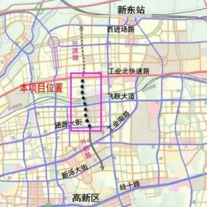 开源路跨胶济铁路立交,位于高新区核心区正北侧,向南衔接高新区核心区的开拓路,向北衔接济南东站片区的宏昌路(原名开源路)。