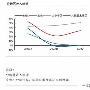 亚玛芬是安踏全球化中的“得力干将”,但是一季度其海外增长势头不如国内——大中华区收入同比增长51%,亚太地区同比增长34%,欧洲、中东和非洲地区(EMEA)增长仅为1%,北美地区收入持平。
