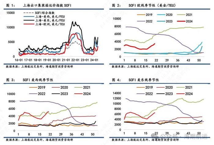 目前地缘冲突和复航预期对近月的实质性影响有限,目前对于06和08的乐观预期更多是基于本身偏强的基本面,因此地缘带来的情绪拖累更多是非理性的超跌,需重视相关买入机会。对于远月来说,我们认为2502和2504合约受到的潜在实质性影响会大于2410和2412,后者需要更关注此轮旺季成色的确定性和持续性,以判断四季度的季节性走势能否重现2021年。