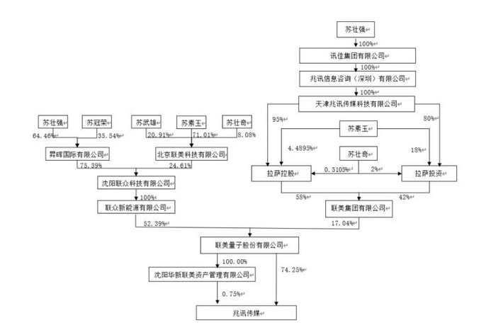 兆讯传媒本次收购完成前的股权结构图