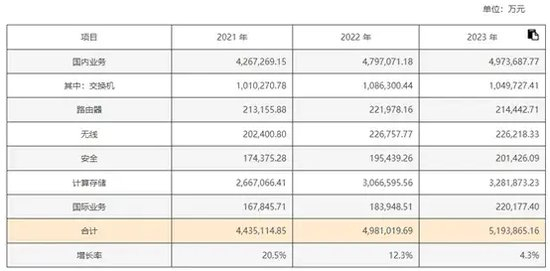 2021-2023年,新华三的收入增长率分别为20.5%、12.3%、4.3%,收入增速持续下降。
