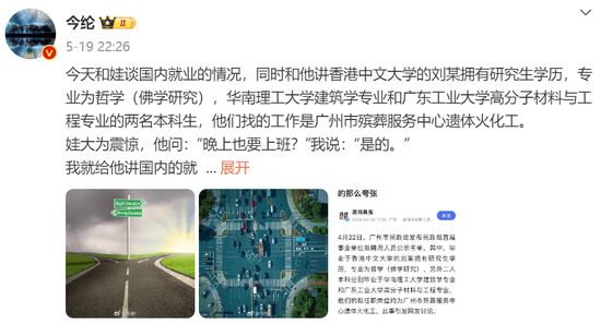 “香港中文大学的刘某拥有研究生学历,专业为哲学(佛学研究),华南理工大学建筑学专业和广东工业大学高分子材料与工程专业的两名本科生,他们找的工作是广州市殡葬服务中心遗体火化工。
