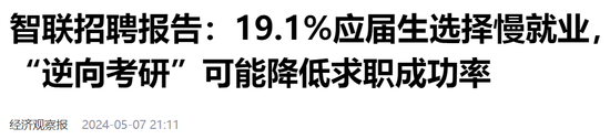 5月7日,智联招聘发布的《2024大学生就业力调研报告》(下称《报告》)显示,应届生慢就业、自由职业的比重分别从去年的18.9%、13.2%增长到今年的19.1%、13.7%。