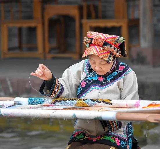2009年,杨华珍将汶川及周边地区18名刺绣能手动员起来,成立“嘉绒藏族编织、挑花刺绣协会”,带着针线和布料,走出大山,去成都找机会。