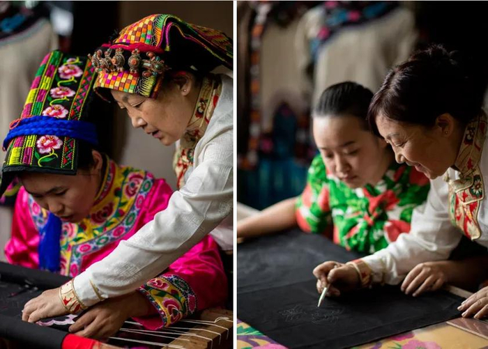 “在我的家乡,每户人家都会藏绣,每个人都是小时候看着妈妈奶奶怎么绣,边看边学就会了。”