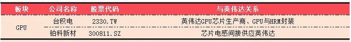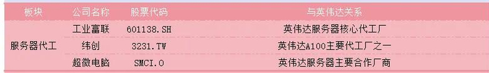 除了以上核心环节的供应链公司外,部分A股上市公司通过其他合作方式也进入了英伟达概念名单。例如,在算力合作方面,鸿博股份、浪潮信息均有合作;在境内智算场景方面,顺网科技与英伟达有合作;千方科技子公司则与英伟达联合开发服务器;中电港则是英伟达的授权分销商;鼎阳科技为英伟达提供电子测试测量仪器。