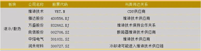 目前英伟达DGX GB200服务器使用的就是液冷技术,液冷系统的主要合作伙伴是美股上市的维谛技术(Vertiv),国内部分供应商通过进入维谛技术产业链实现间接联系。