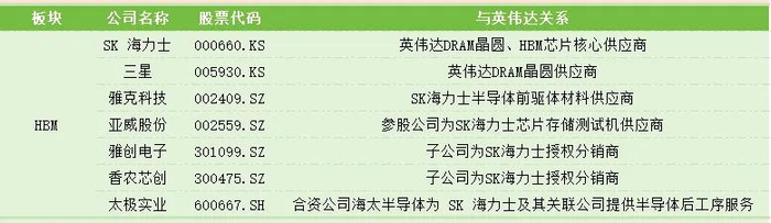 以英伟达A100 80GB配置4或8张GPU卡来计算,其HBM用量约为320-640GB,根据SK海力士预计,中长期内HBM需求的年增长率将达到约60%。不过,目前供给层面HBM几乎被海力士、三星、美光三家企业垄断,其中,SK海力士是英伟达HBM第一大供应商,而A股的香农芯创等则通过供货SK海力士间接绑定英伟达。