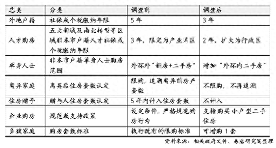 其中,调整优化住房限购政策引发最多关注。主要包括外地户籍居民购房需缴纳社保个税年限从连续五年变为三年,外地户籍单身人士购房范围增加了外环内二手房,离异、赠与后都不再计入套数认定,支持企业购买小户型二手房等。