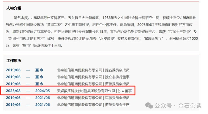 当时,各种传言此起彼伏。笔者也表示,虽然不知道发生了什么,但水皮担任独董的天娱数科不仅董事长被留置,卷入郭柏春渎职犯罪风波,而且水皮所称的天娱数科全面盈利不仅没有实现,而且公司业绩亏损进一步扩大。